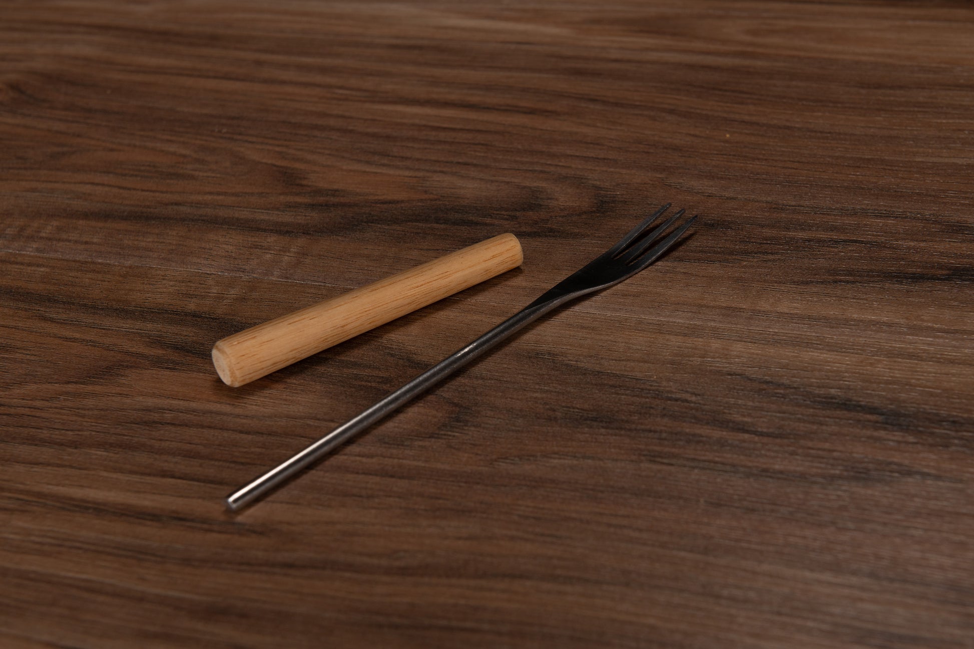 Die zusammensteckbare Fonduegabel ist wegen ihrem kleinen Formfaktor perfekt zum Mitnehmen geeignet. Sie besteht aus einem Holzgriff, in den man die Metallgabel steckt. Im Zusammengebauten Zustand ist sie so gross, wie jede normale Fonduegabel.